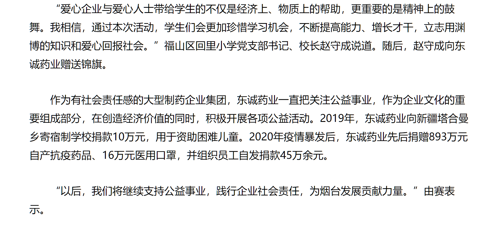 愛心助力圓夢 東誠藥業(yè)向福...